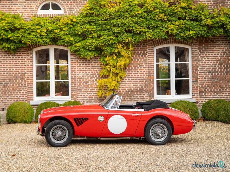 Austin Healey Mark 3 fully restored. This BJ8 has been meticulously restored and is in superb condition. The chassis and body have been treated and are rust-free. During this restoration, both rear fenders were replaced with aluminum examples. The new paint is as per the original, as confirmed by its "British Motor Heritage" certificate that accompanies the vehicle. The interior is brand new and in black vinyl, just like the original. It also comes with a new mohair soft top and matching top cover. The new wooden dashboard, gear knob, and Moto-Lita steering wheel give it a very elegant character. You will also find a kill switch on the center console and a set of OMP harnesses to enhance the "rally" look and your safety. The steering column has been modified/ equipped with power steering from EZ Electric. In addition to the aluminum rear fenders, the vehicle has been fitted with an aluminum fuel tank located in the trunk under the spare wheel. New spare wheel, tires, and toolkit. As for the exterior, the Healey has a rally look, featuring wire wheels with center lock nuts and fitted with Vredestein Sprint Classic tires. The chrome is either new or in excellent condition. The grille is an aluminum rally-style grille with two additional headlights mounted underneath. The 2912cc engine has also undergone a few modifications, the most important being the replacement of the cylinder head with an aluminum version to reduce weight and improve performance. This cylinder head is equipped with three Weber carburetors of the 45DCOE type. The entire suspension is new (including leaf springs) and has been upgraded with adjustable Spax shock absorbers. A stainless steel exhaust completes the car's look. The Austin Healey presented here is the perfect blend for the classic British car enthusiast who wants to enjoy both leisurely drives and rally participation.