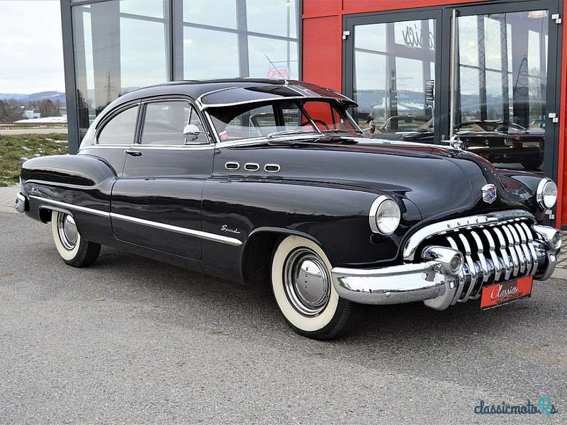 At that time, the Buick brand represented the somewhat more “dynamic” and cheaper alternative to Cadillac. The full-size models were completely redesigned for the 1950 model year and are still among the most popular today due to their spectacular design. Unfortunately, the front of the 50s Buick with the distinctive radiator grille was only installed for one year. From 1951 onwards the optics were somewhat “toned down”. This is also why the 1950 model year is one of the most popular in the Buick Full Size line. The Buick Special “Jet Back” Sedanette also impresses with the great lines of the streamlined Fastback Coupe. The parallel to Cadillac can also be seen here. The name “Jet Back” was absolutely aptly chosen here. This Buick is a real survivor and is in great original condition with a very nice patina. The car's technology has currently been revised and serviced by our workshop. The Buick has been in Austria for several years and has been classified as a historic vehicle. (Oldtimer H registration). §57a “Pickerl” was also made during the service riding. The in-line eight-cylinder runs silky smooth and cleanly. The carburettor was also overhauled. The Buick drives very well and glides elegantly over the asphalt. A real American “full size” as you would imagine. The Dynaflow automatic system complements the smooth-running eight-cylinder engine perfectly. Especially in the late 1940s to early 1950s, automatic transmissions were still a real rarity. Oldsmobile introduced the first automatic transmission in 1940. However, it only became “affordable” for the average car customer in the mid-1950s. The interior is very well preserved and has been partially renovated and refurbished. Everything works as it should. The engine compartment and underbody are also in very nice original condition. You can find more photos on our homepage. To avoid waiting times for advice and sales discussions, please make an appointment in advance on 02742 - 86 595. View this extraordinary coupe in our showroom in St. Pölten and let us convince you of its great driving characteristics during a test drive. We would also be happy to take on §57 inspection, service and repair work, restorations, spare parts procurement, performance measurement (all-wheel drive test bench) or performance optimization and much more for you.
