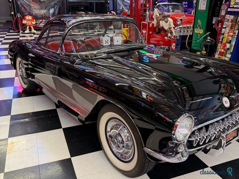 coming to market from a california private collection this rare 56 two top car is one of 111 RPO #449 duntov high lift cam 56Vdual quad 240hp corvettes produced for 1956 model year. equipped with both hard and soft tops, wonderbar radio , 3 speed manual transmission , finished to perfection in black/ silver coves and stunning red interior its ready for that bucket list trip you have always promised yourself along route 66 made famous by Todd and buzz on our tv sets back in our younger days , feel to reach out for further info and schedule an appointment to view at the collection premises in Northern California . we can ship anywhere worldwide using containerised service from the port of oakland california regular sailings to the uk and most European ports and overland within the usa.