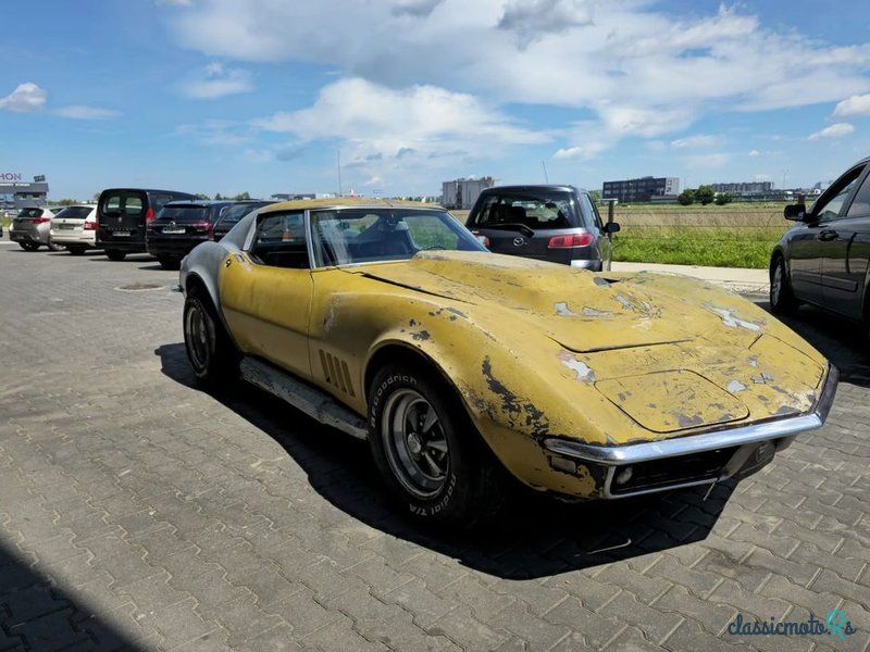 1968 Corvette in a coupe version with manual gearbox. 350CU engine - 300 hp, on a large carburetor! Light color / black. All original parts. Requires varnishing, the agent in very good condition. The engine turns. It is a rare model in front of a lift with chrome bumpers, wanted by collectors. Auto ready for registration, all documents and translations ready. After purchase I will help with registration. I have other Vette C1 / C2 / C3. I built a few pieces they ride around Europe. I have many parts, know-how. I will be happy to help with reconstruction.