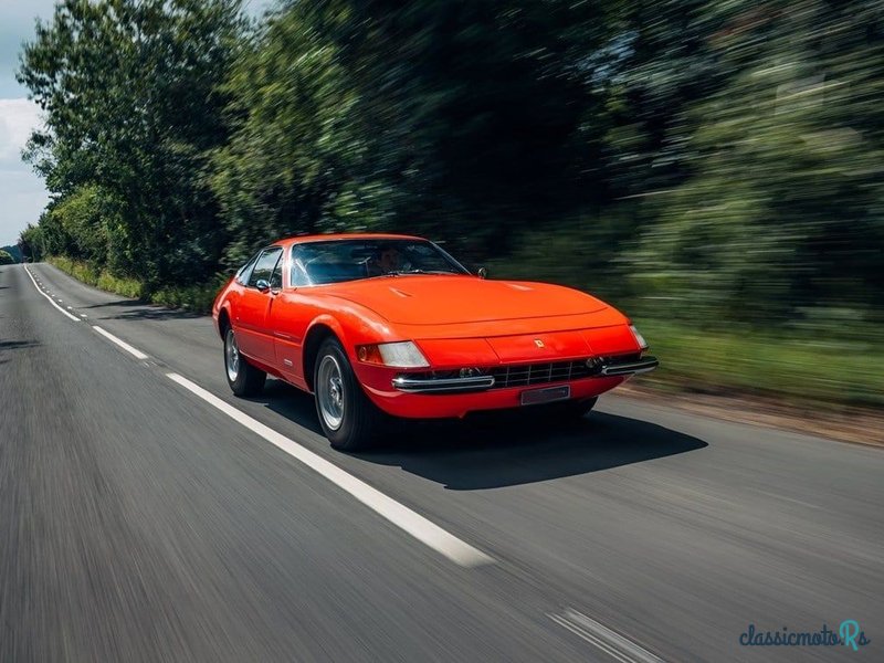 This desirable European specification ‘Daytona’ was supplied new in 1972 to dealer Sante Pedini, a resident of Perugia, Italy in the vibrant colour of Rosso Dino over a Pelle Beige hide and notably optioned with air conditioning. The first private owner from Ancona, Italy, would keep the car for a remarkable 25 years before selling to the car’s second owner, noted Alfa Romeo collector Fausto Annibaldi in Rome who would keep the car for a further 10 years. In March 2008 the car was sold, once more to a new custodian in Italy. Between 2008 and 2011 the car was meticulously restored to retain its original Rosso Dino colour over a Pelle Beige interior with Nero Daytona inserts. The car was advertised for sale once more, fresh from restoration. Purchased by noted marque expert Max Girardo for his father, the car would remain in theirl care for two years. During this time, the car was identified as ‘matching numbers’ and awarded its Ferrari Classiche Certification. Girardo sold the car to Mr Clevely of West Sussex in September 2014 who registered the car in the UK for the first time. Purchasing the car from Clevely, DK Engineering sold this example to its most recent custodian in 2016. Over the course of the past 10 years, the Daytona has resided as part of a prominent Northern European collection. This superb Daytona is presented in an outstanding and original condition, in a most desirable colour combination. Extraordinarily accompanied by its original books, documents and spare parts bag this car is UK road registered and ready to be used and enjoyed immediately.