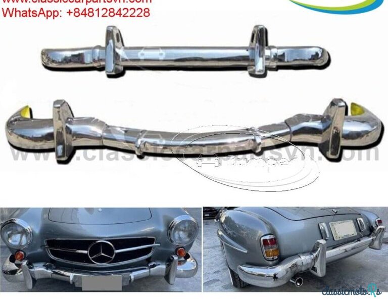 Mercedes 190SL Roadster (1955-1963) bumpers A set of front bumper in 3 parts, rear bumper in 3 parts, 4 overriders, 2 joining strips, 2 embellishers, overrider rubber inserts. We offer both style of rear over riders with number plate lights cut out or without cut out. The product has shape and size like the original samples. So, They perfect fit on the car. Products are made of 304 stainless steel imported from Japan and India, especially with a chrome content higher than 30%, so they never rust, do not corrode or peel over time. Polished product – with a perfect shine (like chrome). This is the perfect replacement. Please visit the link: classiccarpartsvn.com/product/mercedes-190sl-roadster-bumpers-2/ If you need all parts for any classic car, please contact me. Web: classiccarpartsvn.com Email: {censored} WhatsApp: +84 81 284 2228