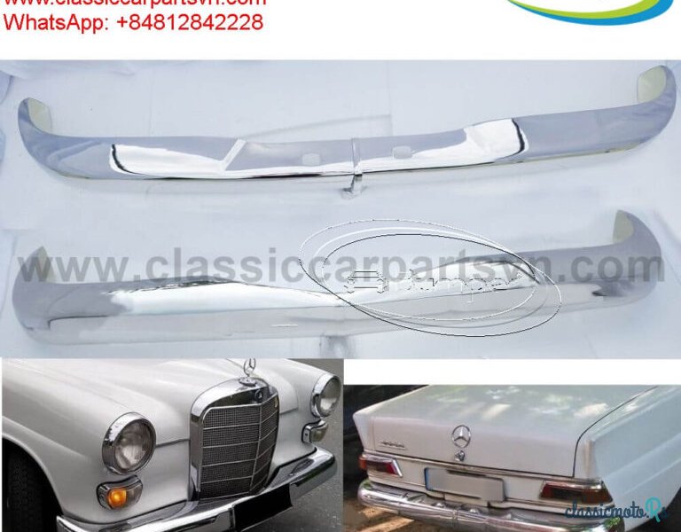 Mercedes W110 EU Style Fintail (1961 – 1968) Bumpers A set of 1 front bumper in 2 parts with a cover, 1 rear bumper in 2 parts with cover, bolts and screw. The product has shape and size like the original samples. So, They perfect fit on the car. Products are made of 304 stainless steel imported from Japan and India, especially with a chrome content higher than 30%, so they never rust, do not corrode or peel over time. Polished product – with a perfect shine (like chrome). This is the perfect replacement. Please visit the link: classiccarpartsvn.com/product/mercedes-w110-fintail-bumpers/ If you need all parts for any classic car, please contact me. Web: classiccarpartsvn.com Email: {censored} Fanpage: facebook.com/profile.php?id=100088684251588 WhatsApp: +84 81 284 2228