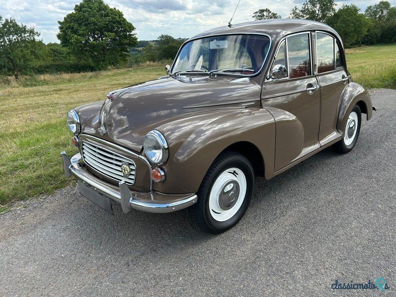 1967 Morris Minor Four Door Saloon 1098 cc Finished in Peat with contrasting red interior , Subject of a beautiful restoration in and around 2016/ 2017 which included a full engine rebuild (Fully Documented) . Approximately 3000 miles have been coved since completion to date and the odometer reads just over 42, 000 miles which is said to be the original mileage . Upgrades include an Alternator conversion , ULG Fuel Conversion , Disc brakes conversion to front brakes , Seat belts and Radial tyres , This Minor starts on the key instantly and out on the road it is an absolute joy to drive , Light steering , Great brakes and everything appears to function correctly . The 4 door saloon is with out doubt excellent , The underside appears superb and requires no attentions , Detailed engine bay , Beautiful red interior , Ready to go , Last service 25/ 4/ 2025 , The Minor is an iconic British cult classic , Easy to drive and in this condition maintain , Many spears specialists , Classic insurance and great enthusiast club , Comes with current V5C and extensive supporting history , Delivery and Shipping arranged £6750