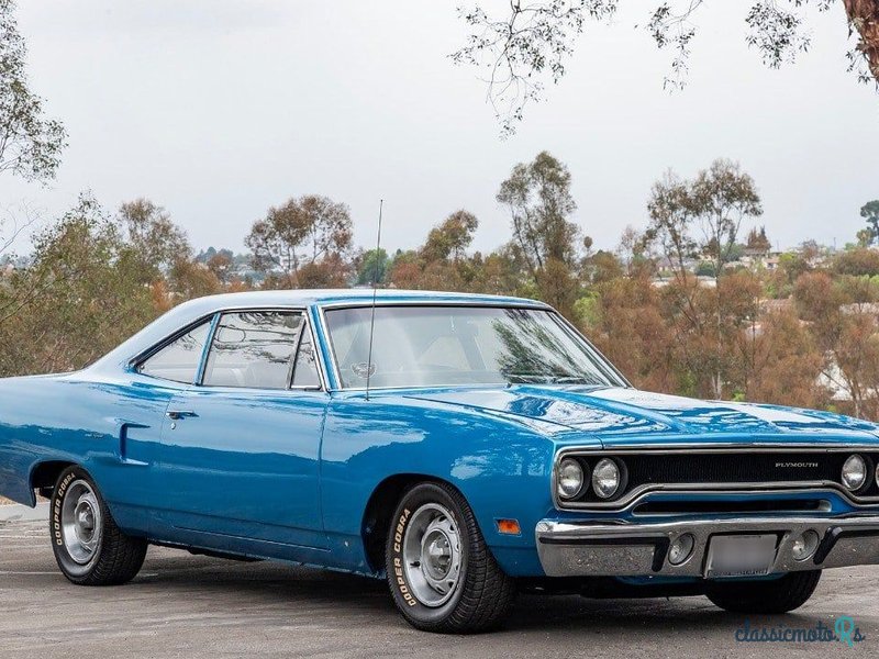 1970 Plymouth Road Runner 4-SpeedIntroducing this 1970 Plymouth Road Runner 4-Speed, finished in its striking Blue Fire Metallic exterior over a clean black interior. With its purposeful styling and no-nonsense attitude, this example reflects the original spirit of Mopar's budget-minded muscle car, built for performance without unnecessary frills. Highlights:- California Car- Long-Term Ownership 20+ Years- Exterior Color: Blue Fire Metallic- 4-Speed Manual Transmission- V8 Engine- Edelbrock AVS2 Carburetor- Power Steering- Drum Brakes- Mopar Performance Valve Covers- MSD Blaster 2 Coil- Hurst Shifter- Chrysler Solid State Radio- Chrome Accents- Mopar 14-inch Rally-Style wheelsPower comes from a V8 engine paired with a 4-speed manual transmission, offering a direct and engaging driving experience. The inclusion of a Hurst shifter adds to the car's driver-focused feel, while dual exhaust outlets provide the expected muscle car sound. Exterior details such as chrome bumpers, quad headlights, and 14-inch Rally-style wheels maintain the car's period-correct appearance. It rides on Cooper Cobra Radial G/ T tires, and the trunk retains a jack and full-size spare for practicality. Inside, the cabin stays true to its roots with bench seating, dome light, glove box, manual crank windows, and vent windows. A simple analog clock and Chrysler Solid State radio highlight the straightforward design philosophy of the era, while the fender-mounted antenna and classic 3-spoke steering wheel round out the vintage touches. The Road Runner was one of the few cars officially licensed from Warner Bros., complete with the famous beep-beep horn inspired by the cartoon character, an unusual and memorable feature that helped set it apart from its competitors. Whether you're adding to a collection or looking for a classic Mopar with authentic character, this Road Runner presents as a well-kept example that remains mechanically sound. For $56, 500Introducing this 1970 Plymouth Road Runner 4-Speed, finished in its striking Blue Fire Metallic exterior over a clean black interior. With its purposeful styling and no-nonsense attitude, this example reflects the original spirit of Mopar's budget-minded muscle car, built for performance without unnecessary frills. Highlights:- California Car- Long-Term Ownership 20+ Years- Exterior Color: Blue Fire Metallic- 4-Speed Manual Transmission- V8 Engine- Edelbrock AVS2 Carburetor- Power Steering- Drum Brakes- Mopar Performance Valve Covers- MSD Blaster 2 Coil- Hurst Shifter- Chrysler Solid State Radio- Chrome Accents- Mopar 14-inch Rally-Style wheelsPower comes from a V8 engine paired with a 4-speed manual transmission, offering a direct and engaging driving experience. The inclusion of a Hurst shifter adds to the car's driver-focused feel, while dual exhaust outlets provide the expected muscle car sound. Exterior details such as chrome bumpers, quad headlights, and 14-inch Rally-style wheels maintain the car's period-correct appearance. It rides on Cooper Cobra Radial G/ T tires, and the trunk retains a jack and full-size spare for practicality. Inside, the cabin stays true to its roots with bench seating, dome light, glove box, manual crank windows, and vent windows. A simple analog clock and Chrysler Solid State radio highlight the straightforward design philosophy of the era, while the fender-mounted antenna and classic 3-spoke steering wheel round out the vintage touches. The Road Runner was one of the few cars officially licensed from Warner Bros., complete with the famous beep-beep horn inspired by the cartoon character, an unusual and memorable feature that helped set it apart from its competitors. Whether you're adding to a collection or looking for a classic Mopar with authentic character, this Road Runner presents as a well-kept example that remains mechanically sound.