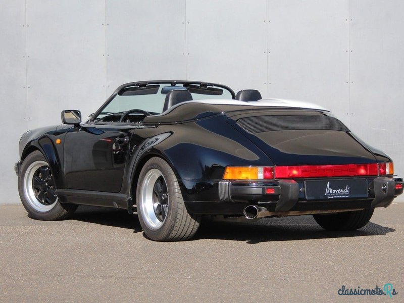 - German vehicle, full-service history- In current ownership for 19 years- New OEM Cabriolet roof- Attractive triple-black colour combination- German registration with an H-plateVehicle history:In 1989 the Speedster was introduced as a homage to Porsche’s racing tradition, aimed at those seeking the ultimate driving experience — stripped-back, raw and pure. The 1989 Porsche 911 Speedster embodies this ethos and the soul of a true enthusiast’s car. Its low-slung profile, the iconic double-bubble roof and the clean lines shout agility and power.This very handsome Speedster was delivered to the first owner in 1989 through the Porsche Centre Hamburg. He enjoyed the car for almost 15 years before it passed to the second owner. The current owner has been driving the lovely Speedster since 2006. The car is presented in exceptionally good condition. Fourteen stamps in the service book and plenty of service invoices attest to a highly coherent service history.In 2024 a new original-brand Cabriolet hood was fitted, together with a ceramic paint protection coating.