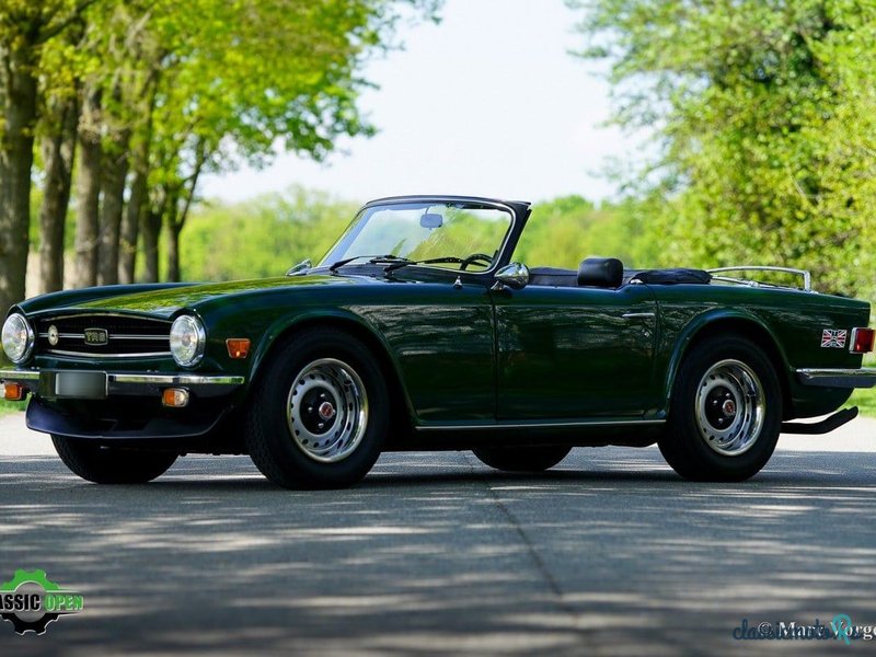 Triumph TR6, year 1973. Exterior colour Triumph Racing Green combined with a black interior and black carpet. Black vinyl hood and hood cover. This tremendous Triumph TR6 was imported from the United States (US) in 1996. Being a low-mileage car (37665) in wonderful condition, the car only needed a repaint in 1997 for the 'perfect picture'. In the last 28 years the car has known two owners who took excellent care of the car. The 2. 5 Litre six-cylinder engine runs perfectly, the four speed manually operated gearbox shifts robustly and snappy. The overdrive works as it should, like a top gear, lowering the engine revolutions at high road speeds. Over the years, the interior was newly upholstered, the seats were clad in black leather. Other improvements were done like the fitment of electronic ignition, S. U. carburettors, an aluminium rocker cover, and a more powerful brake servo. The original steel wheels were given new Stainless Steel rim embellishers and shod with Vredestein Sprint Classic Tyres. Furthermore, the car is fitted with two chrome door-mounted rear-view mirrors, a Philips stereo radio, safety belts, and a chrome baggage rack. Currently the odometer shows 63. 700 miles, and the car is in a very good condition! The service history is well documented with photos, invoices, and other documents. The Triumph TR6 is one of the most masculine British sportscars offering a lot of classic driving fun, a great soundtrack, and a superb dashboard with a great view over the long bonnet. A great example for the true enthusiast! Upgrades, repairs and mileage: 37665 miles imported from the USA (1996). New paint and S. U carburettors 1997 50791 miles clutch renewed 52728 miles (2008) differential overhauled 57272 miles powerful brake servo fitted 59800 miles (2021) gearbox and overdrive overhauled, and electronic ignition fitted 63700 miles (2025) sales test drive and photography. We speak Dutch, English , German and French. Our cars can be delivered with Dutch, German or Belgium registration. We can assist with the French registration. Transport to your door is possible. We have our own workshop facility with 30 years experience with classic cars.