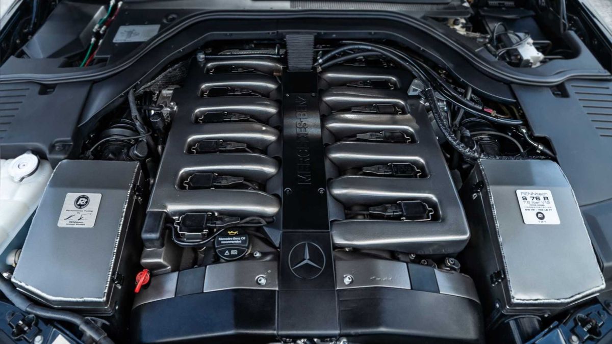 Appelée S76R, cette Mercedes 600 SEL modifiée est le fruit du travail de Renntech, un préparateur américain qui travaille sur les voitures de la marque à l’étoile. On peut dire qu’il n’y est pas allé avec le dos de la cuiller puisque le V12 6 litres d’origine a été réalésé à 7,6 litres. Le travail ne s’arrête pas là puisque les arbres à cames ont été modifiés, les bielles sont désormais en titane, les injecteurs ont été remplacés et les culasses retravaillées.