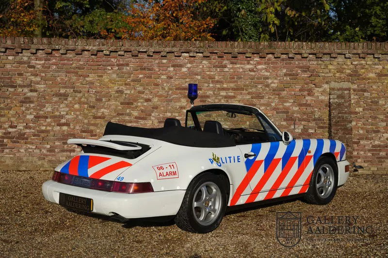 Pendant des années, des modèles Targa ont privilégiées car les officiers qui étaient toujours à deux dans les voitures pouvaient facilement se redresser dans la voiture pour faire des signes et sommer les automobilistes de se ranger sur le bas-côté. Mais voilà, en 1993 (la dernière année de son existence), ce corps de police tout à fait particulier a fait l’acquisition d’une 964 Carrera 2 cabriolet.
