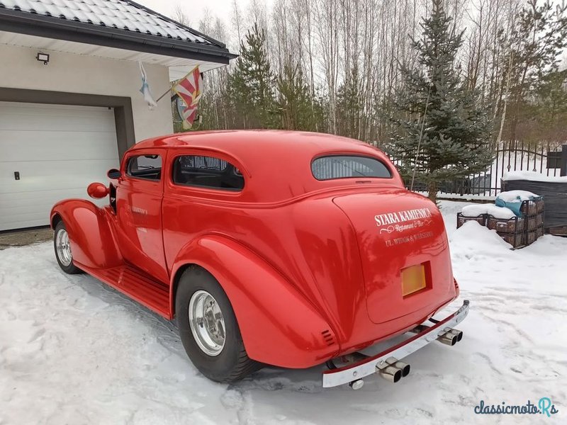 J'ai un Hot Rod de 1937 à vendre. La Chevrolet Master De Lux était équipée aux USA d'une transmission automatique, d'une direction assistée, d'Over Drive, de la climatisation et de freins à disque avant de Wilwood Engineering. Le moteur provient probablement d'une Corvette de 1968. L'essieu arrière est raccourci pour les pneus comme sur la photo. Les portes et le couvercle du coffre sont sans poignée et s'ouvrent avec une télécommande. Vitres avant électriques. En Pologne, un récepteur radio (antenne rétractable) avec Bluetooth (avec kit mains libres), une caméra de recul et 6 haut-parleurs a été ajouté. La publicité est collée sur la voiture. J'émets une facture avec TVA.