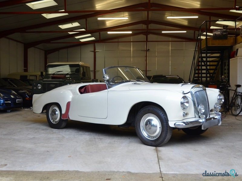 Daimler Conquest Roadster 1955. Notre client nous a confié la vente de ce superbe et très rare roadster Daimler Conquest, le dernier Roadster construit avant le coupé à tête tombante. Complété en blanc anglais avec un toit décapotable en mohair rouge et détaillé avec un pare-chocs chromé. L'intérieur en cuir rouge, les tapis et le tableau de bord rouges sont tous assortis à la couleur du toit en mohair. Le tout pour un Daimler Roadster au look époustouflant. Mon client a hérité du Daimler de son père il y a environ 15 ans. il a passé 5 ans à faire redémarrer la Daimler à un niveau très élevé avec des reçus et des factures indiquant environ 50 000,00 £. Depuis la restauration, la voiture a été stockée à sec et utilisée avec parcimonie lors des week-ends d'été impairs tout en démarrant et en atteignant la température tous les quelques mois. Il a maintenant décidé de vendre après avoir confié le Daimler à nous-mêmes. La voiture est maintenant partie pour une bonne remise en service où elle sera entièrement révisée, tous les filtres des bouchons d'huile étant changés et un examen approfondi avant la vente. Il s'agit d'un Daimler Roadster très bien présenté, en superbe état et une trouvaille très rare n'ayant eu que 3 propriétaires depuis le neuf, dont 2 propriétaires étant de la même famille. Nous avons une énorme boîte d'informations sur l'historique d'entretien et un dossier de reçus et de factures datant de plusieurs années, ainsi que de nombreux reçus pour les travaux de restauration. Je recevrai un portfolio complet de photos ainsi que quelques vidéos réalisées une fois que nous aurons récupéré la voiture de la remise en service.