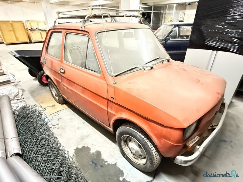 La première génération de Fiat 126 de 1975 (à rénover) version PL EXP Numéro de carrosserie : LD-25-02843 Moteur de 594 cm3 de 23 CV, assemblé pour la première fois à Bielsko-Biała le 6 juin 1973, à partir de pièces italiennes. Les premiers modèles (ST) se caractérisaient par des pare-chocs chromés, un large espacement des boulons de roue (4×190 - "citrons") et l'absence d'éléments de finition en plastique. La voiture comprend : - une nouvelle garniture de pavillon, - un hayon arrière avec des prises d'air plus larges - des pare-chocs chromés (neufs et originaux provenant d'un concessionnaire local).