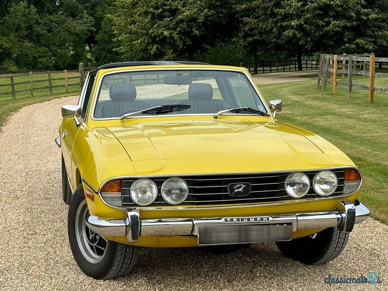 ⸻ Triumph Stag 1974 – Jaune MimosaNous connaissons ce véhicule depuis quatre ans, l'ayant déjà fourni à son plus récent propriétaire. La voiture a subi des travaux considérables au cours de la période 2022-2023, notamment : • Peinture professionnelle complète dans un joli jaune Mimosa • Remise à neuf intérieure complète • Nouveau capot • Roues remises à neuf • Remise à neuf du moteur La voiture se présente magnifiquement et roule exceptionnellement bien. Le Stag est livré avec un dossier historique complet et a été soigneusement entretenu. tout au long de sa propriété. Au cours des deux dernières années, elle a été régulièrement entretenue et entretenue par Stagbay, spécialiste bien connu des modèles Triumph Stag. Elle a clairement été la fierté et la joie du propriétaire, mais malheureusement elle n'est désormais disponible qu'en raison de la mauvaise santé du propriétaire et de son incapacité à continuer à la conduire. Nous avons depuis racheté le véhicule et sommes heureux de le proposer à nouveau. Un très bel exemple en effet, à un prix raisonnable et compétitif sur le marché. a été très bien conservé depuis et se présente bien.