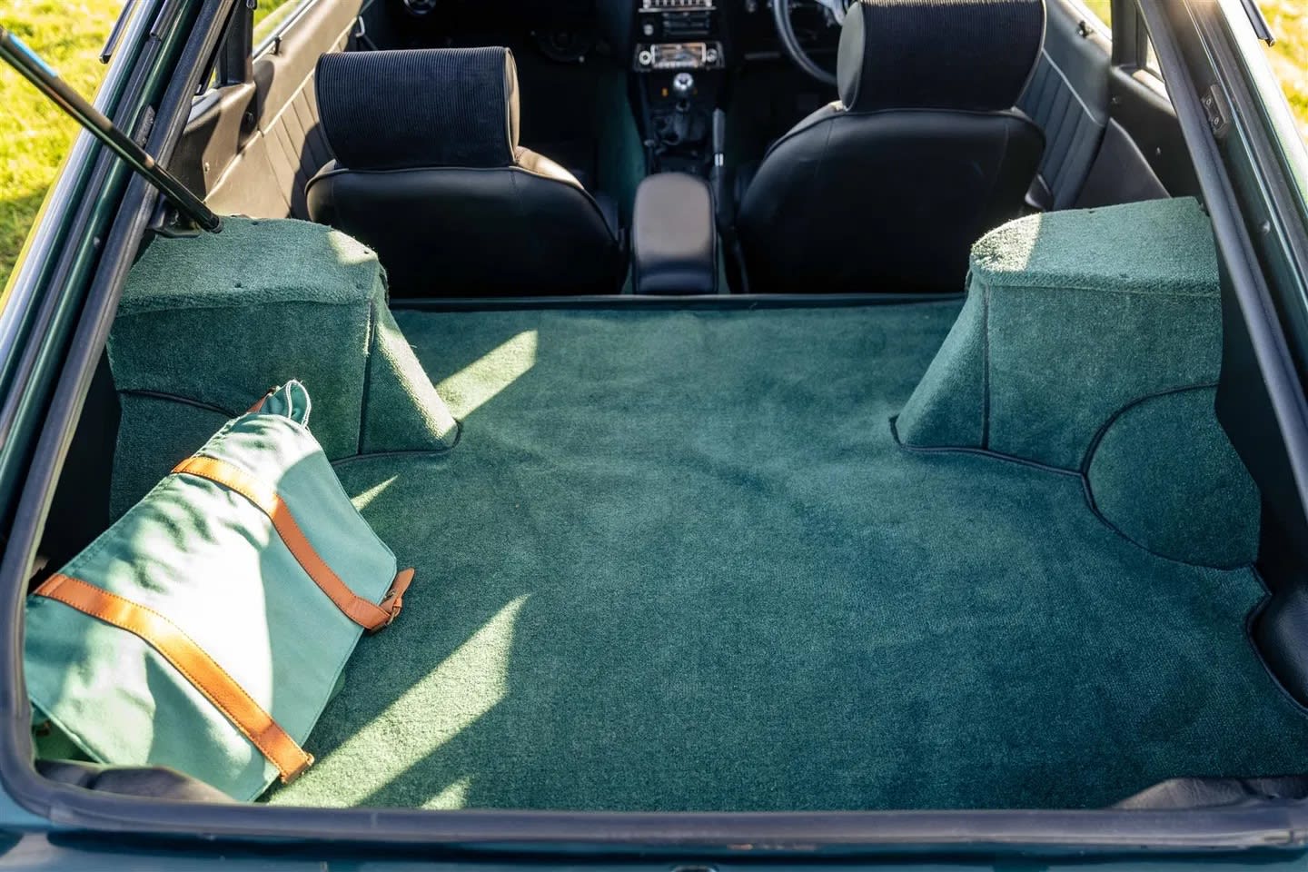 Step inside and you’ll see the same balance of old and new. The original dashboard is still there, uncracked, with those classic cowled gauges front and center. But you also get modern touches like a Bluetooth head unit that looks period-correct, inertia-reel seatbelts, and full soundproofing. Black leather and velour seats, Wilton carpets, a Moto-Lita wheel, and a matching gear knob give the cabin a classic feel.
