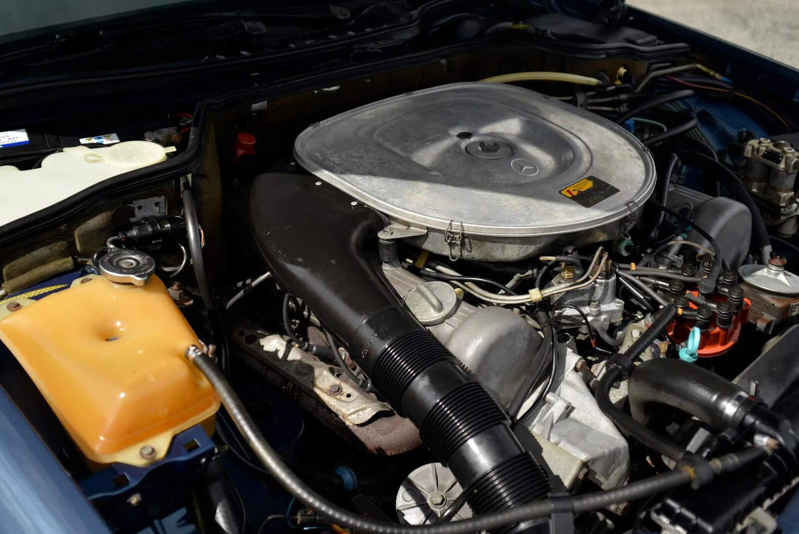 Der aus Leichtmetall gefertigte Achtzylinder leistet 231 PS und ist bekannt für seine elastische Leistungsentfaltung sowie hohe Laufkultur. Das Triebwerk gilt als ausgesprochen standfest, sofern Wartung und Ölversorgung stimmen, und war in den 1980er-Jahren das technische Herzstück der Oberklasse-Modelle von Mercedes.