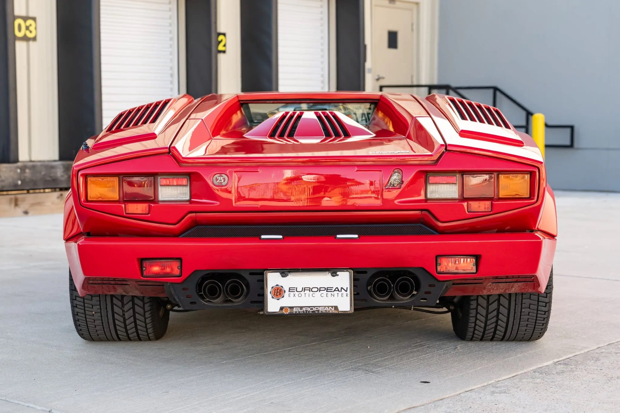 Euro-spec downdraft Countachs are among the most collectible variants due to their higher output and mechanical character, here, a 5.2-liter Bizzarrini-designed V12 producing 448 hp and 369 lb-ft, fed by six Weber carburetors. The 25th Anniversary design updates make it the most refined and fastest factory Countach, and values have continued rising as interest in analog supercars grows.