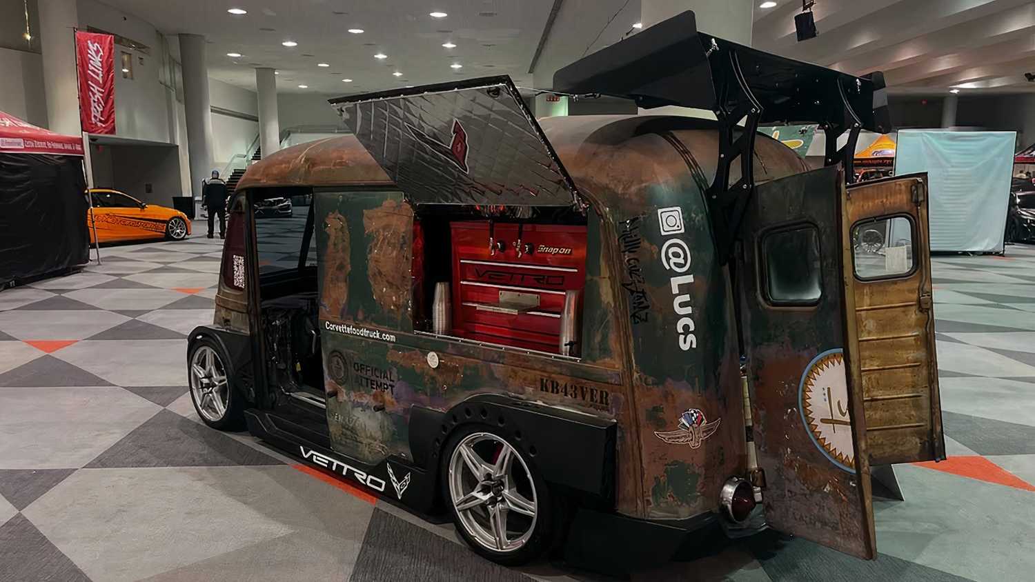 According to NorthJersey.com, Koch came by the truck, paying $400 for it. While not the logical basis for a modern food truck, he started out wanting to restore it while keeping its worn patina and use it for his catering business. However, Koch has a history of buying and selling cars for fun, and during the COVID lockdown, he bought a 2021 C8 Corvette Stingray. It was later that he and some friends hit on the idea of what to do with the Corvette, and the world's fastest food truck was conceived. After a lot of work, the truck with its beautiful patina has a kitchen on one side, a bar on the other, and a Chevrolet 6.2-liter V8 in the middle. Koch calls it the Vettro, which is perfect. And, before the cynics get into the comments, it's a real food truck that serves real food.