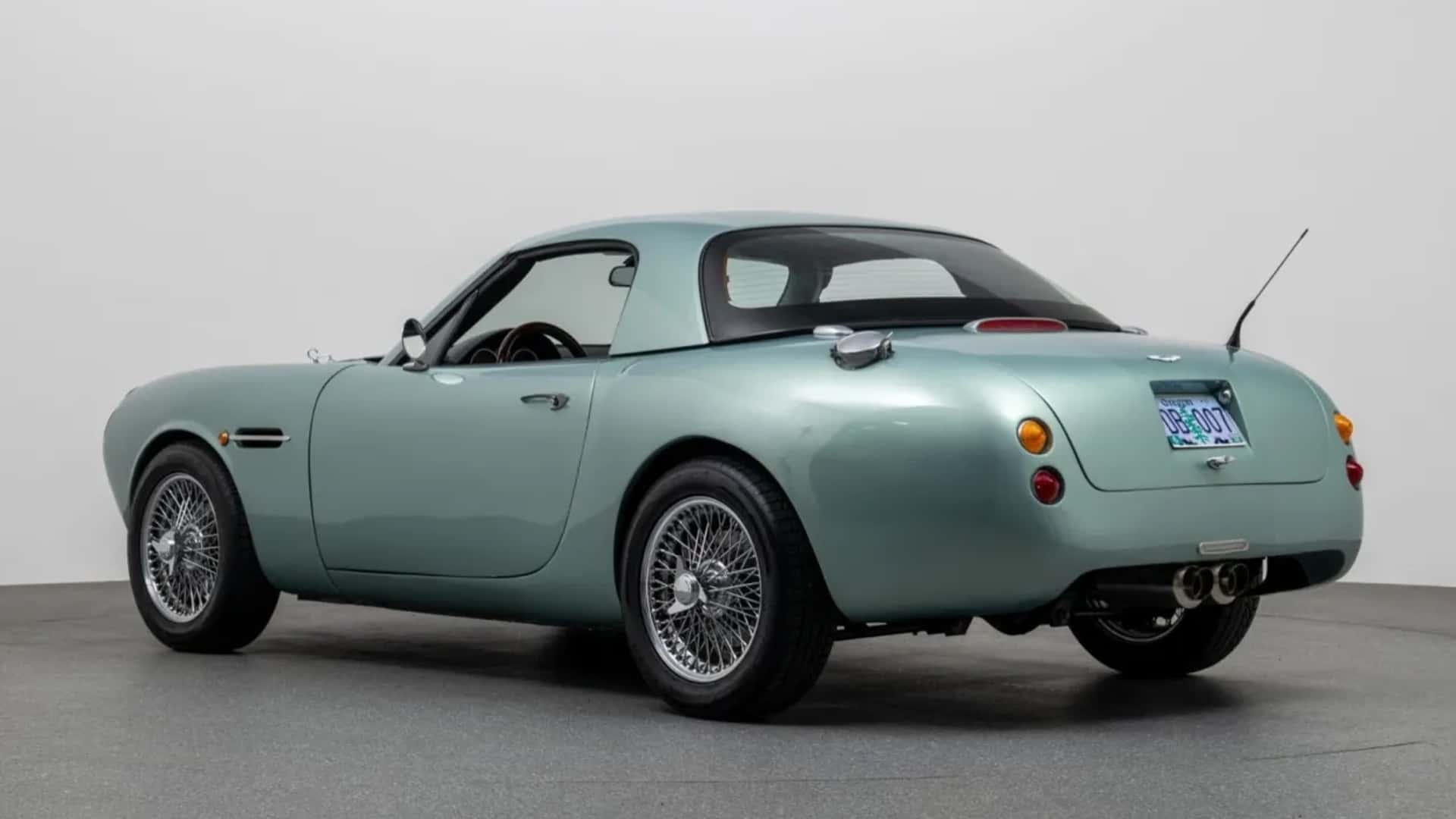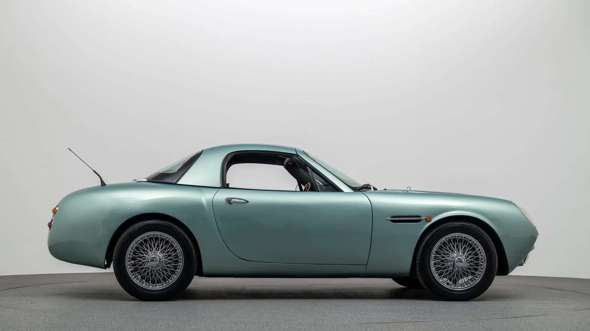 While the door skins are unchanged, the car has handles sourced from a Lancia Flavia. Other Aston touches include the front fender vents, hood scoop, and badge.