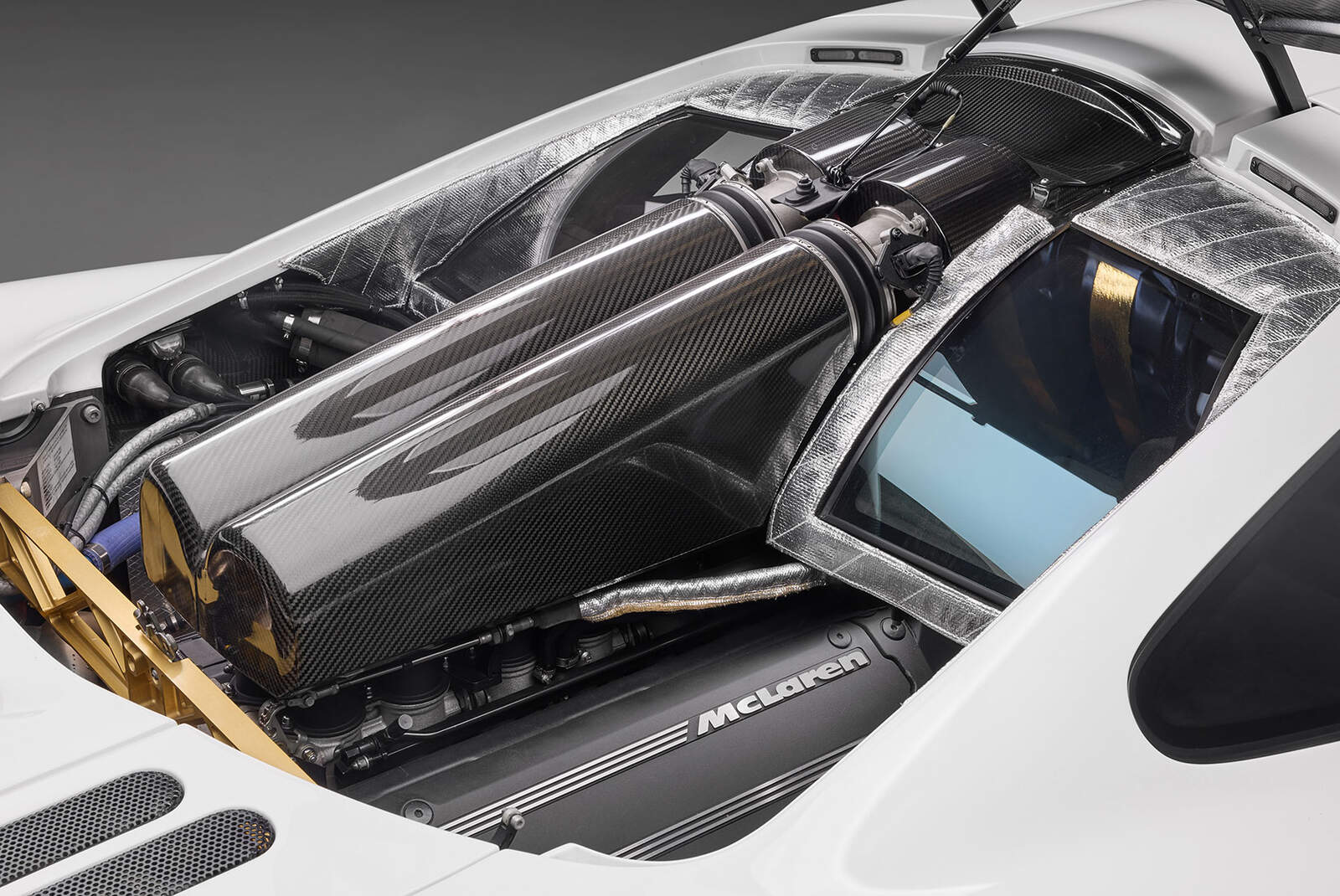 Der 6.064-ccm-V12 von BMW leistet 627 PS und beschleunigt das nur 1.138 Kilogramm leichte Fahrzeug in 3,2 Sekunden auf 100 km/h. Das Chassis aus Carbon und Kevlar, die zentrale Sitzposition und der völlige Verzicht auf elektronische Fahrhilfen machen den F1 zu einem der letzten analogen Supersportwagen. Zwischen 1992 und 1998 entstanden lediglich 106 Exemplare, davon 64 mit Straßenzulassung. Zu den markantesten technischen Merkmalen des F1 zählen der mittige Fahrersitz, der mit Goldfolie ausgekleidete Motorraum und der ultraleichte, eigens entwickelte Kenwood-CD-Wechsler.
