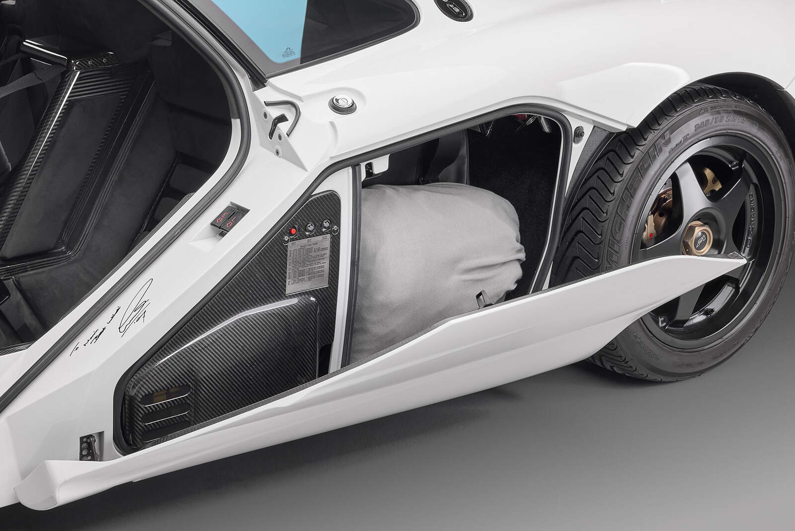 Das High-Downforce-Kit umfasst eine feste Heckflügelkonstruktion, eine GTR-inspirierte Frontschürze mit Splitter und LM-spezifische Kotflügel. Ergänzend erhielt Chassis 014 neue Scheinwerfer, ein modifiziertes Abgassystem und schwarze OZ-Racing-Felgen im Fünfspeichen-Design. Im Innenraum wurden Klimaanlage und Sitze überarbeitet, der Fahrerplatz in LM-Spezifikation ausgeführt und mehr Carbon sichtbar gemacht.