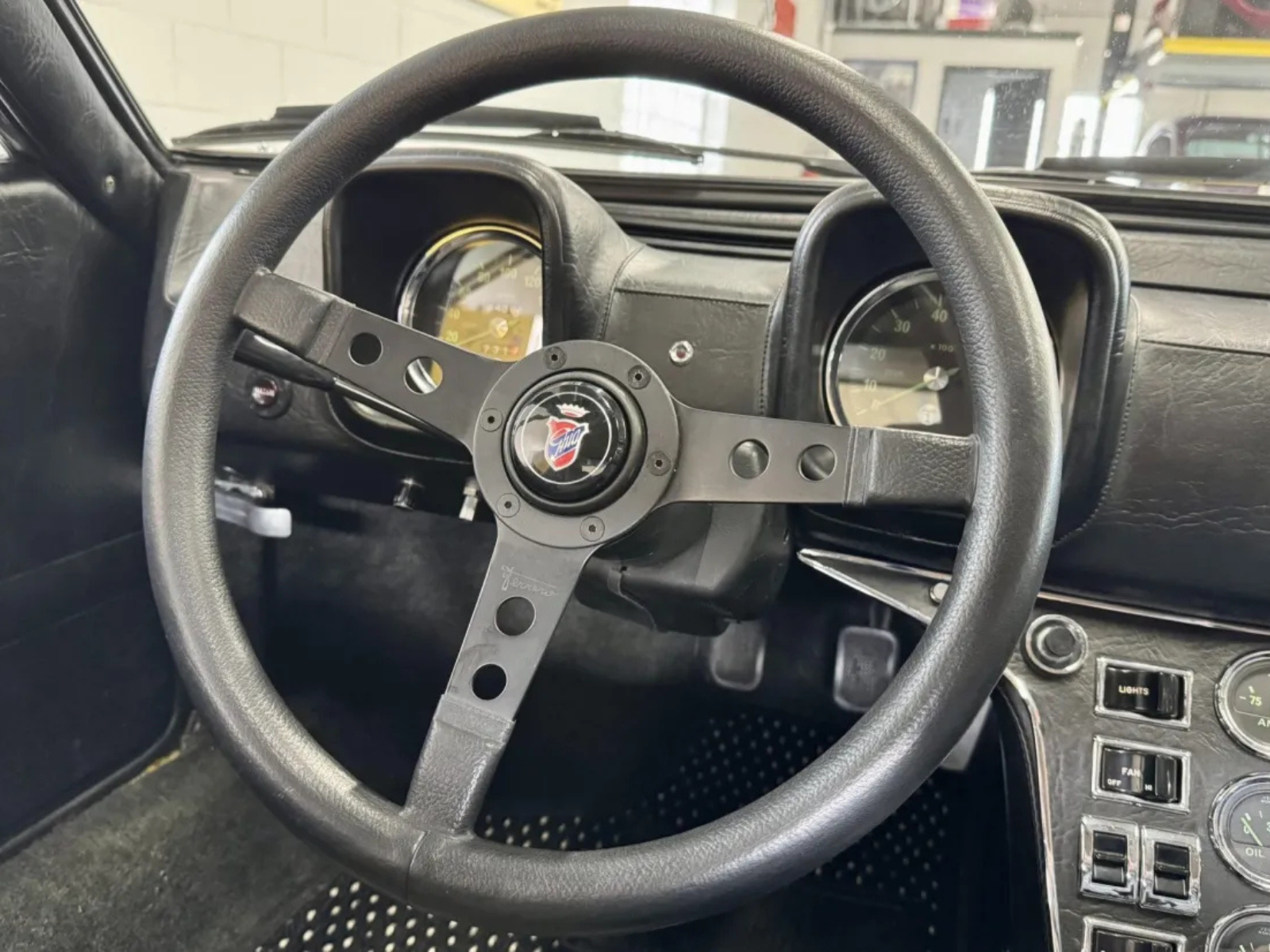 Inside, the bucket seats received replacement bolsters and were reupholstered in black vinyl with houndstooth cloth inserts. Under the current ownership, the car also gained a Ferrero steering wheel, an aftermarket stereo and speakers, a new headliner, and retrimmed side panels.
