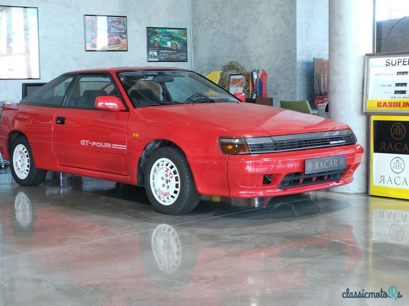 VISITE-NOS EM – WWW.RACAR.PT – PARA CONHECER TODO O NOSSO STOCKToyota Celica GT-Four ST165 – Agosto de 1988Curiosamente, o conceito inicial para o nome “Celica GT-Four” não podia ser mais diferente da espetacular máquina de vencer ralis em que este acabou por se tornar. Apresentado ao público em 1985 no Salão Automóvel de Tóquio como um descapotável, a Toyota quis introduzir com o GT-Four um “desportivo de tracção intergral a céu aberto”.Contudo, a produção deste protótipo cabriolet nunca foi para a frente, dando em vez disso, lugar ao ST165 que conhecemos hoje em dia, um coupé de 2 portas com porta-bagagens hatchback. Falamos então do 1º GT-Four, introduzido durante a 4ª geração do Celica. A importância e reconhecimento deste modelo hoje em dia, está essencialmente nos sucessos e resultados que este alcançou e naquilo que representou para a indústria automóvel Japonesa. Este foi o primeiro carro nipónico com motor turbo e tracção integral no palco mundial de ralis e foi chegar, ver e vencer. Com o GT-Four, a Toyota conseguiu nada menos do que entrar extenso palmarés de títulos do mundial de ralis, até então composto exclusivamente por construtores europeus.E apesar de ser com a 2ª geração do GT-Four, vulgo ST185, que a Toyota lança uma edição limitada comemorativa do sucesso de Carlos Sainz com a marca, a primeira vez que o piloto espanhol se sagrou Campeão Mundial de Rally foi em 1990 abordo de um ST165, navegado por Luis Moya, justamente “igual” ao que aqui temos. Este GT-Four é nacional e está em excelente estado de conservação e originalidade em todos os campos. Destacamos a sua quilometragem reduzida, totalizando apenas 65 881kms e encontra-se completo com a sua pasta de bordo com os respectivos livros e manuais de utilizador, bem como duplicado de chaves.Conjuntamente com as jantes OZ Sparco que se vêem montadas nas fotografias, este nosso Celica faz-se acompanhar ainda das suas jantes originais.Encontra-se disponível para visita nas nossas instalações.As condições de garantia são negociadas por mútuo acordo.Dispomos de condições privilegiadas para financiamento.A informação acima disponibilizada não dispensa a validação por parte do nosso departamento comercial.Não hesite em contactar-nos para qualquer outra informação ou esclarecimentos adicionais.