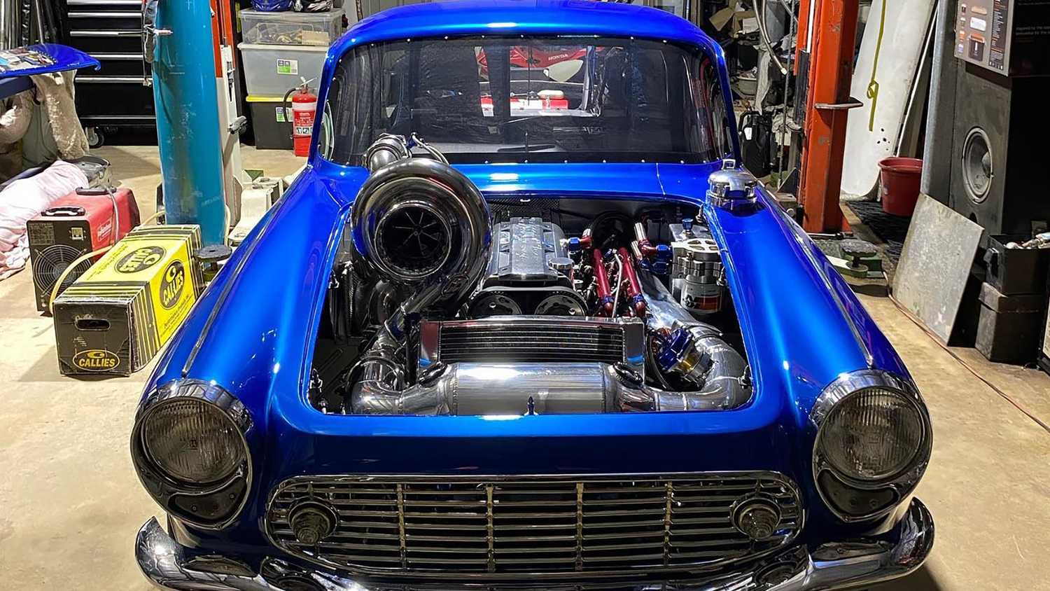 The original details that remain on this car are incredible. It still has most of its factory body panels, for a start, including the adorable headlights and grille. Even the interior is mostly stock. The perforated vinyl door cards, the steel glovebox latch, and even the headliner are in place. Right beside what looks like an intercooler reservoir tank and a video display that lets Penny see around the enormous turbo that sits in front of him.