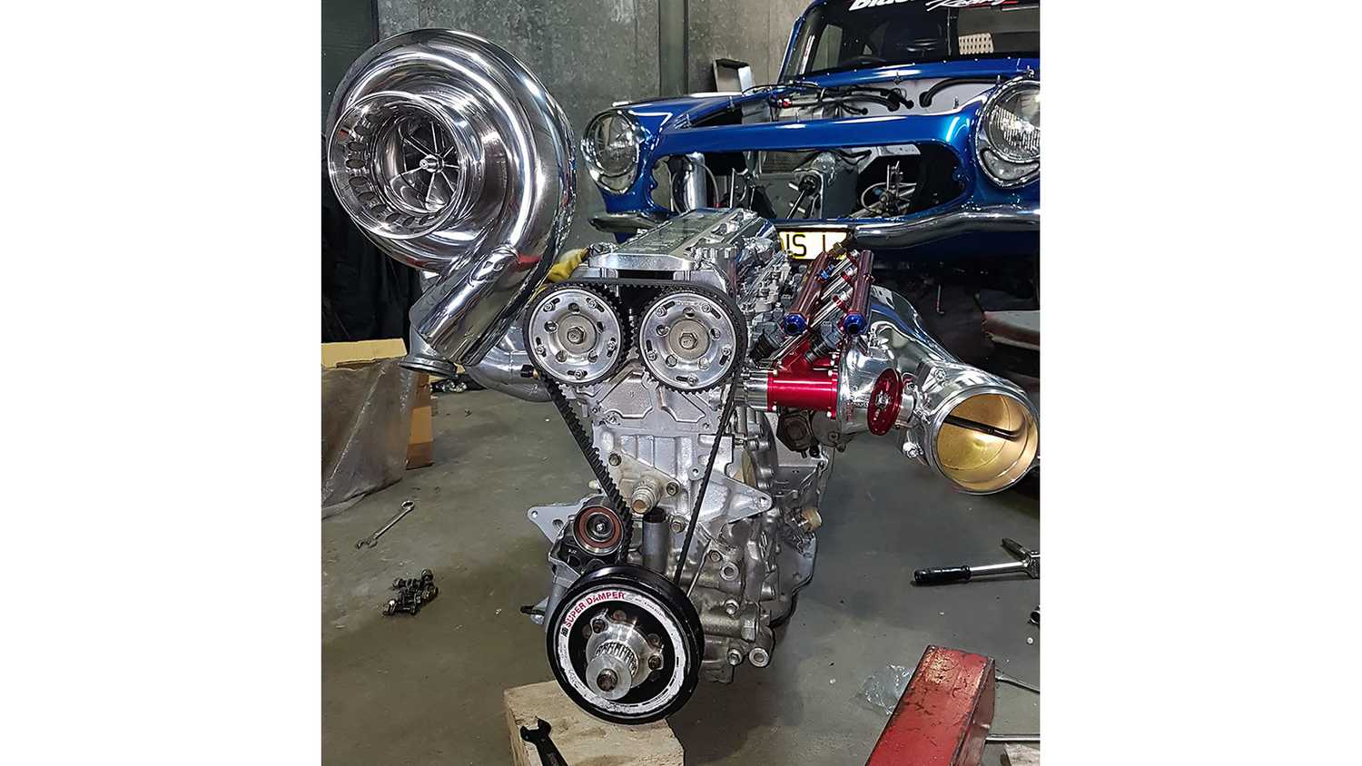 Two fuel injection systems plumbed with 12 1600cc injectors spray enough methanol to support this car running 30 pounds of boost. On the dyno, the car made 1,380 hp before this last trip to the track. That means each of the six cylinders is generating four times more horsepower than the original engine. Each cylinder is about the same displacement as that original engine, too, for that matter.