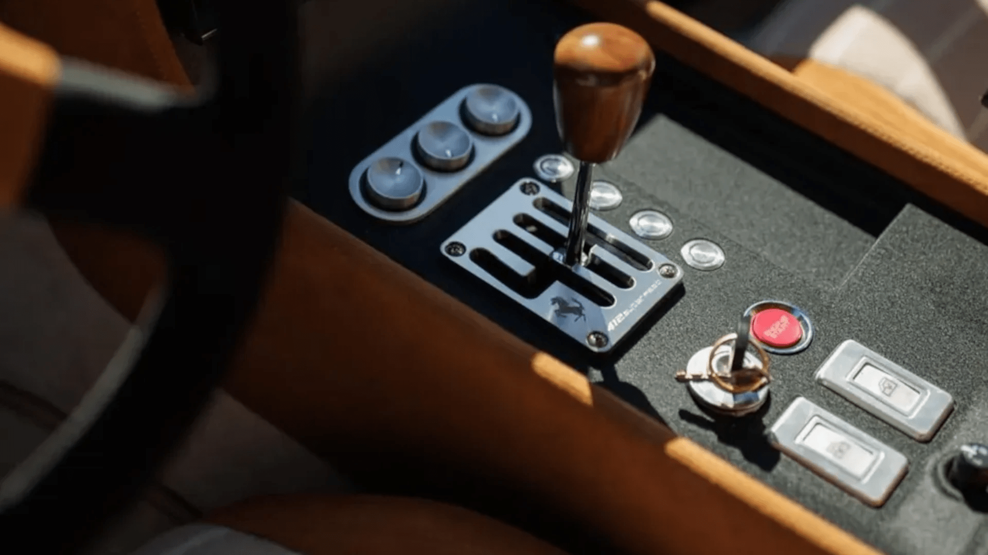 The cabin is lathered in Alcantara, including the steering wheel (which comes from a 512 TR but was also shared with a 348), and that’s par for the course in a restomod, but the seat centers and door cards are trimmed in Mongolian Cashmere that costs $1,000 per yard, and the door handles and gear knob are made of Bastogne walnut from a tree cut down in the same year as this car was made. This alone cost $3,800. The seats are electronically adjustable Sabelt items with carbon backs and the carpet is the same stuff as in a Rolls-Royce. Infotainment is taken care of with an Excelon setup with CarPlay, and there are custom buttons that put the car into its wet setting, turn the traction control off, and enable launch control. With all of this in mind, the $1.8 million build cost suddenly makes sense. But we don’t blame you if you still think it’s ugly.