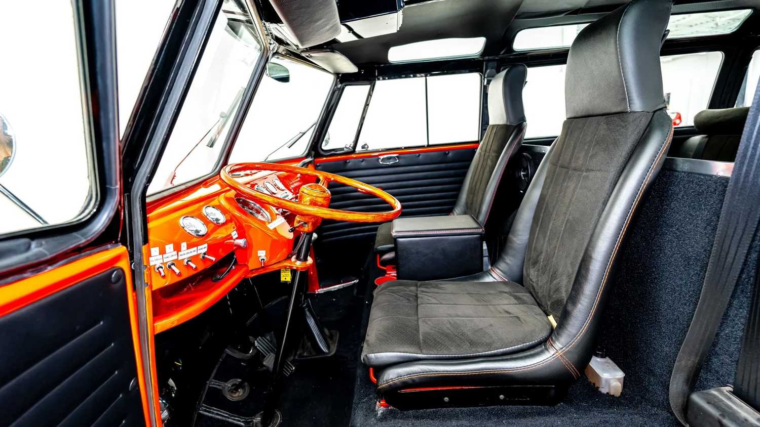 Apart from the widened rear end, the custom 21-window Bus also gets aircraft-style dual air scoops to enhance the cooling at the back. The black-and-red paint scheme is also custom, while the brakes have thankfully been upgraded to discs (instead of drums). The dual exhaust ports aren't from the factory, as are the set of shiny chrome wheels that somehow spoil the almost-vintage look of this V8-powered Bus.